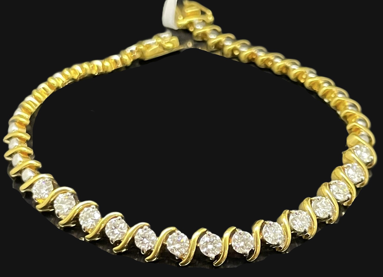 Delicate yet dazzling, this diamond bracelet (CJ2522) is a perfect harmony of elegance and craftsmanship. Set in 18K gold and weighing 16.482 grams, it features 1.84 carats of high-quality white diamonds (VVS–VS) that radiate refined brilliance. Whether worn alone or layered, this bracelet adds a graceful sparkle to any look.